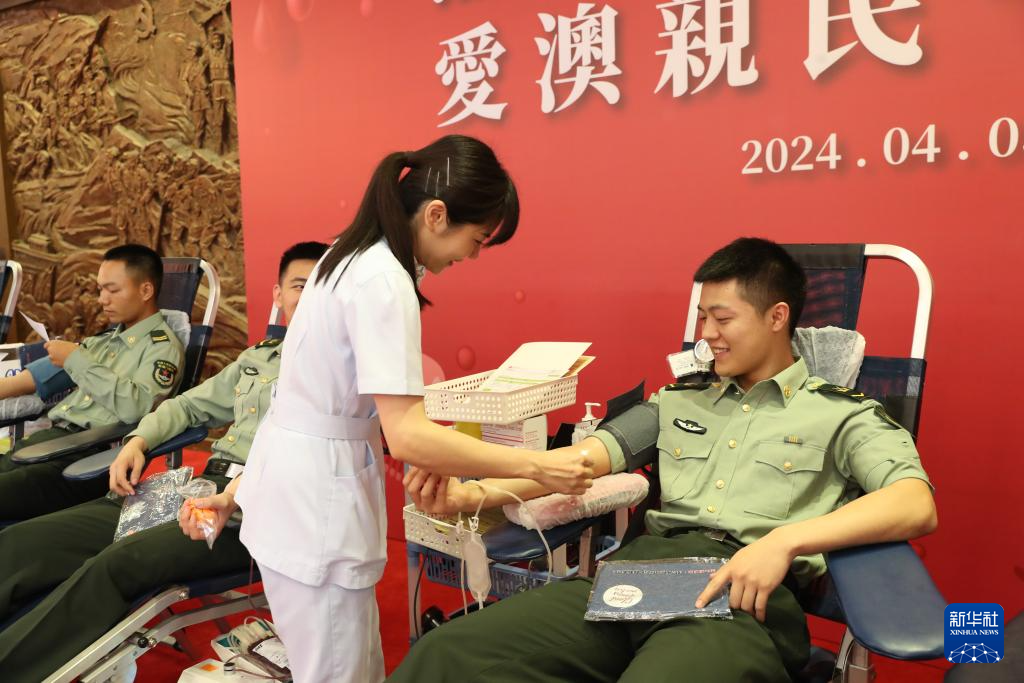 4月3日,驻澳门部队官兵积极参加无偿献血活动。新华社发(陈帅摄)