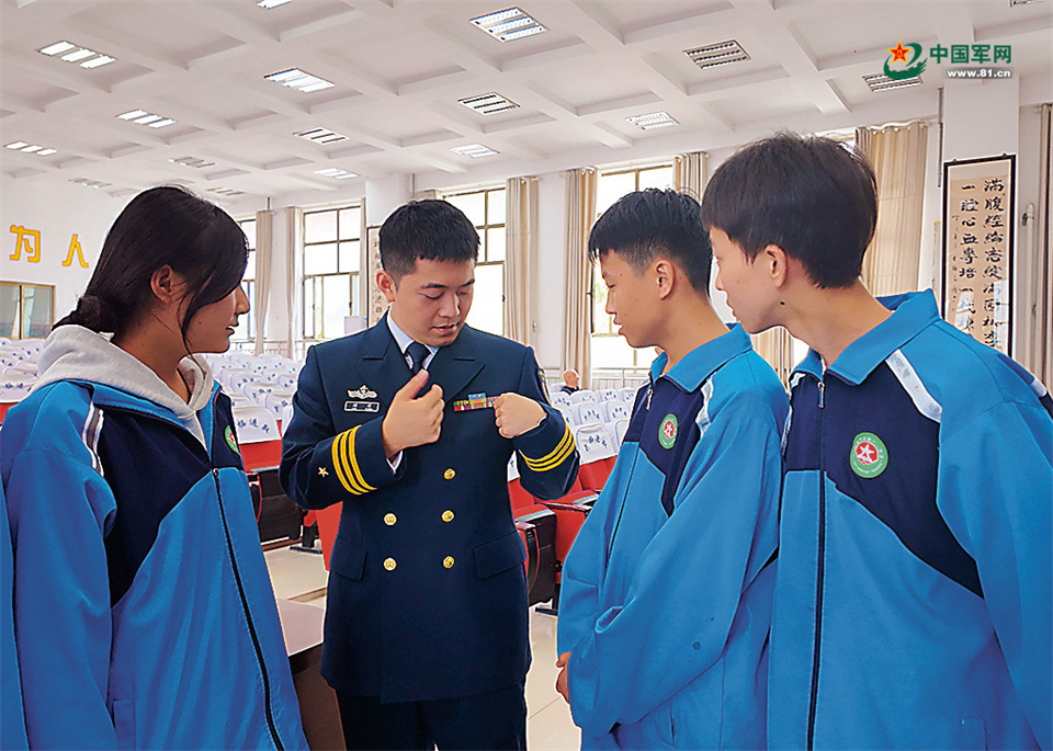 “当海军有什么要求?”“我手臂上的这个疤痕影响当兵吗?”宣讲活动现场,学生纷纷举手提问。作为学校的校外辅导员,刘洋告诉笔者,基地每年都会选派官兵代表到学校开展国防教育、助学活动,与学生们面对面交流,鼓励他们参军报国。