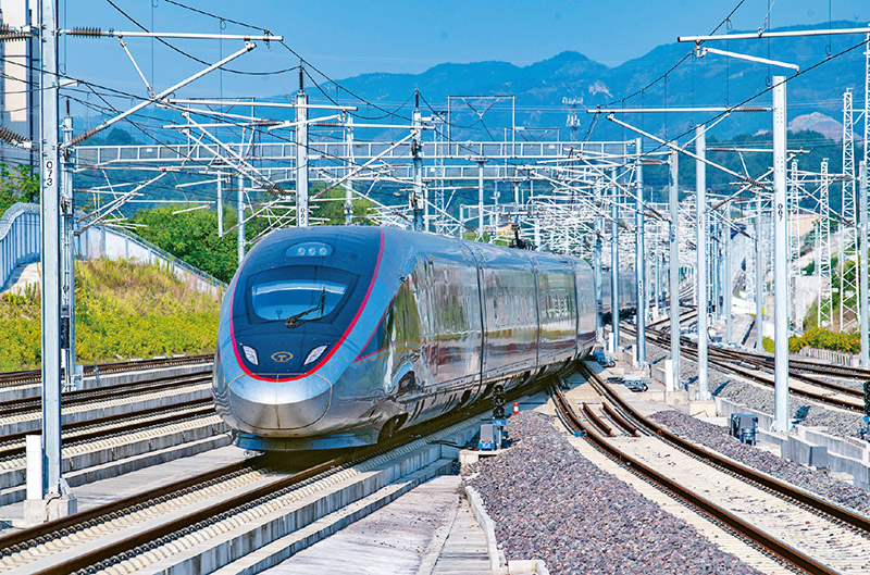 近年来,我国持续完善市场准入制度,鼓励支持民间资本参与铁路、能源、水利等国家重大基础设施项目建设,不断拓展民间投资发展空间。2024年9月6日,我国第二条民资控股建设的高速铁路——杭温高铁正式开通运营。图为2025年9月5日,在杭温高铁浙江金华横店站,一列高铁列车平稳驶出车站。 中新社发 胡肖飞/摄