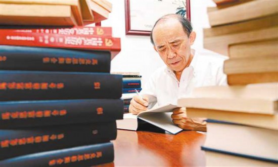 六月二十四日,江北区观音桥街道,马善祥利用午休时间看书学习马克思主义,他的写字台上堆着《马克思恩格斯全集》。首席记者 崔力 摄/视觉重庆