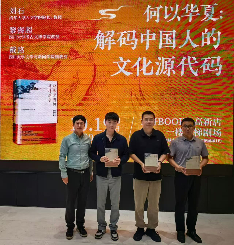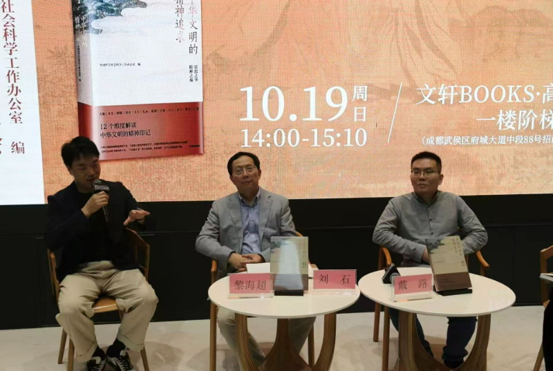 清华大学人文学院教授、院长刘石阐释了《中华文明的精神追求》的宏大立意与独特架构。他说,该书以“天道”“治世”“修身”三大篇章为架构,从天地、生生、家国、君子等12个维度,系统勾勒了中华文明理解世界、组织社会、安顿个体的完整体系。回溯一个国家的“来时路”,解码古老的精神印记,对于应对当下挑战、明晰未来发展具有至关重要的现实意义。四川大学考古文博学院教授黎海超结合三星堆考古发掘的经历,阐述了青铜神树、黄金面具等文物所蕴含的奇幻色彩与精神世界,印证了中华文明早期瑰丽的想象力与深邃的宇宙观。四川大学文学与新闻学院副教授戴路则从文学视角出发,剖析了经典文献在传承“文化源代码”中的角色。3位学者还围绕考古“实证”与文学“感悟”如何互补互证进行了深入交流。