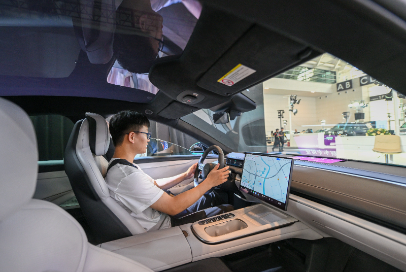 观众在2024世界智能产业博览会现场静态体验一款智能网联电动汽车(6月22日摄)。新华社记者 孙凡越 摄