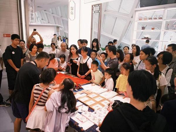2024年7月,广东省非物质文化遗产馆,游客在“解忧年画铺”了解佛山木版年画。