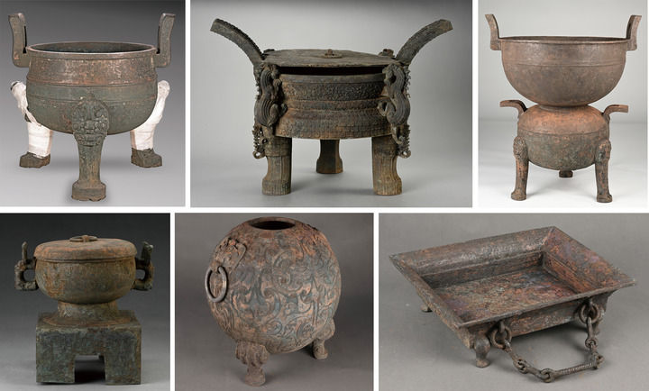安徽淮南武王墩一号墓出土的铜器(拼版照片,资料照片) 。 新华社发(考古杂志社供图)