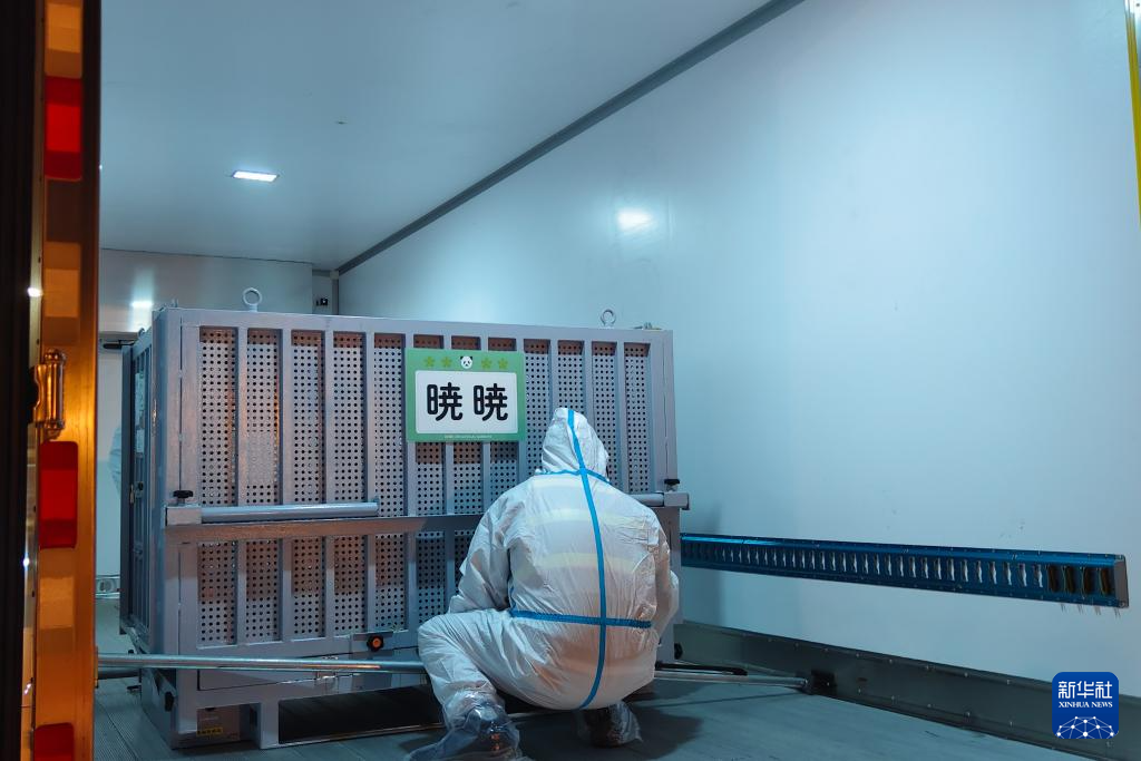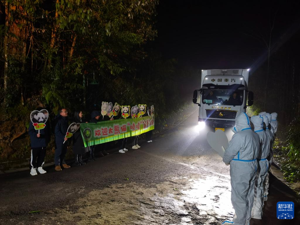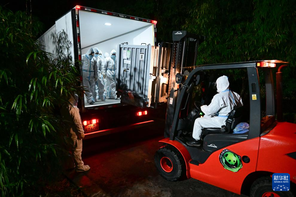 1月28日凌晨,大熊猫“晓晓”“蕾蕾”抵达中国大熊猫保护研究中心雅安基地。新华社发(中国大熊猫保护研究中心供图)