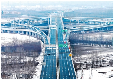 1月18日拍摄的京雄高速泗庄枢纽互通。 |