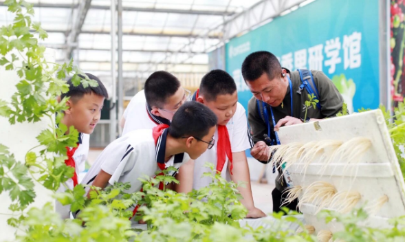 寿光市还依托蔬菜产业优势,打造了涵盖20余个主题场景和50多个实践项目的“蔬香里”研学馆,将“从一粒种子到一盘好菜”的全过程变成了可动手、可体验的成长课。“同学们,你们知道《齐民要术》中记载的‘顺天时,量地利’,在现代农业中如何体现吗?”研学导师的提问,让全场注意力瞬间聚焦。在这里,孩子们观察细胞结构、检测水质pH值、组装立体栽培系统,甚至参与蔬菜新品种的培育。研学馆将千年农耕智慧与前沿农业科技、粮食安全与科技自强等主题深度融合,为不同学段的学生量身定制课程体系,让一堂生物课升华为关乎责任与创新的思政课,每个孩子都能找到属于自己的成长点。