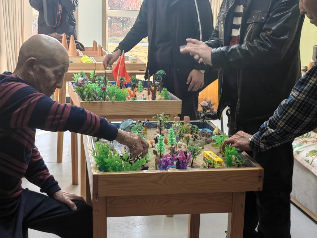 “我们会定期举行沙盘活动,一方面老人们能够在沙盘中表达自我、活跃大脑、改善认知能力,另一方面也可以及时发现老人的情绪问题。”毛海霞说。