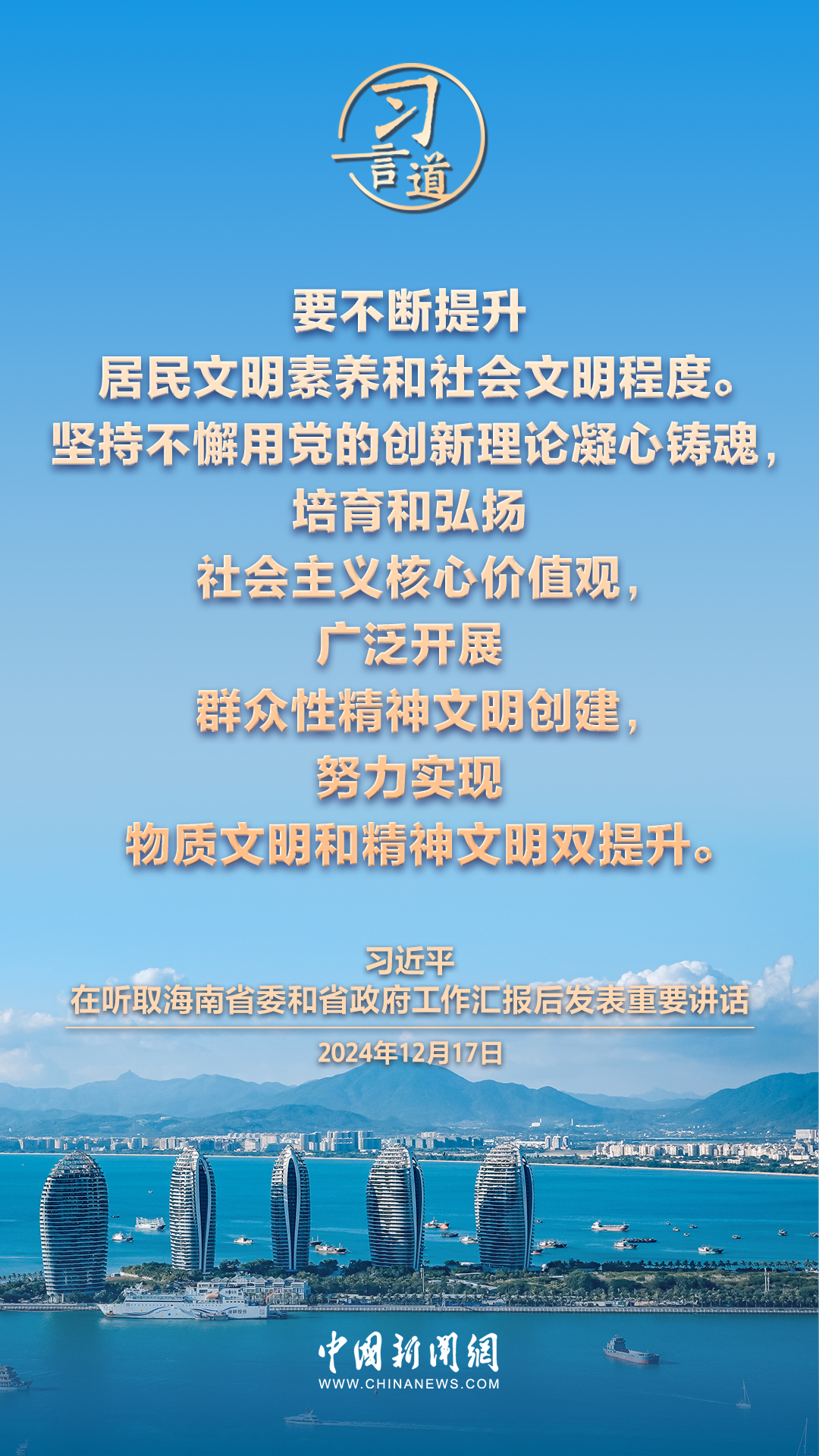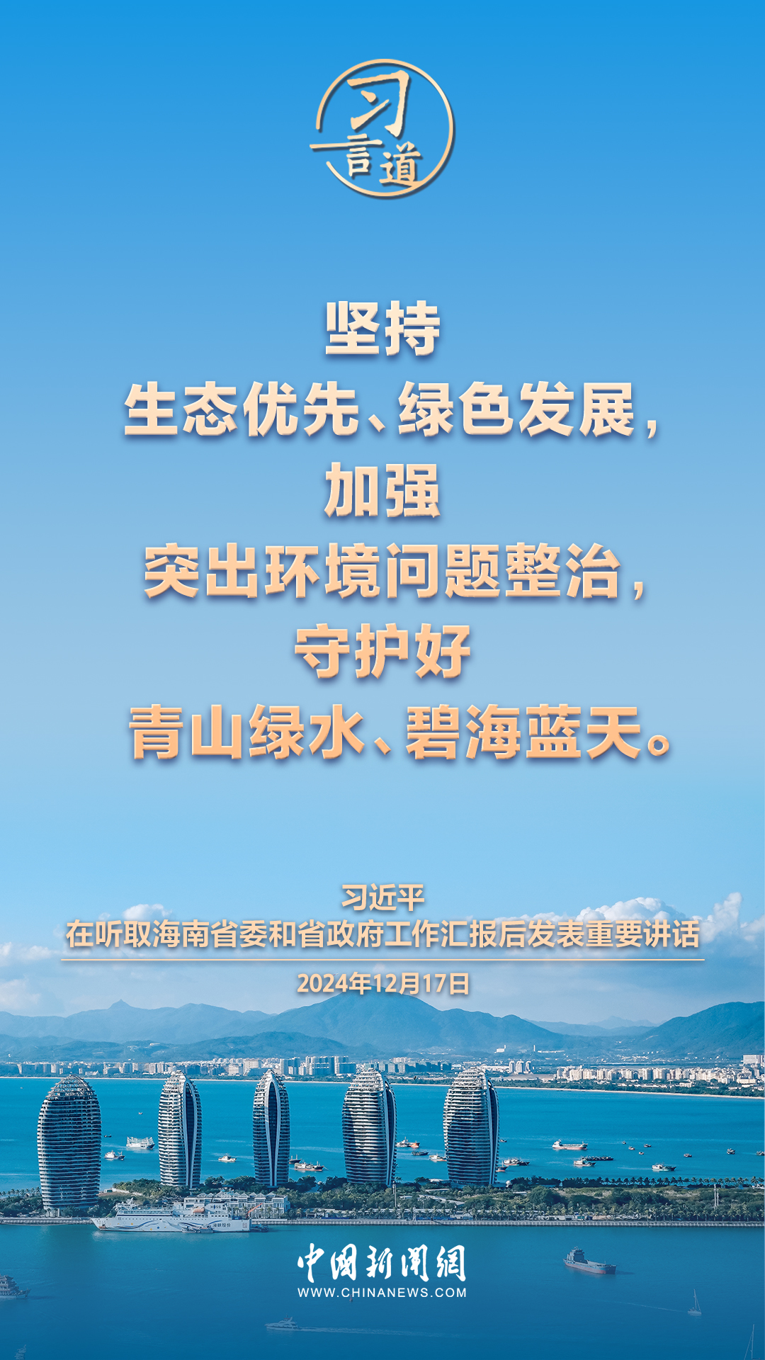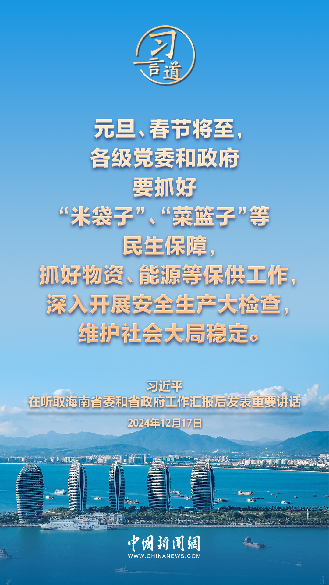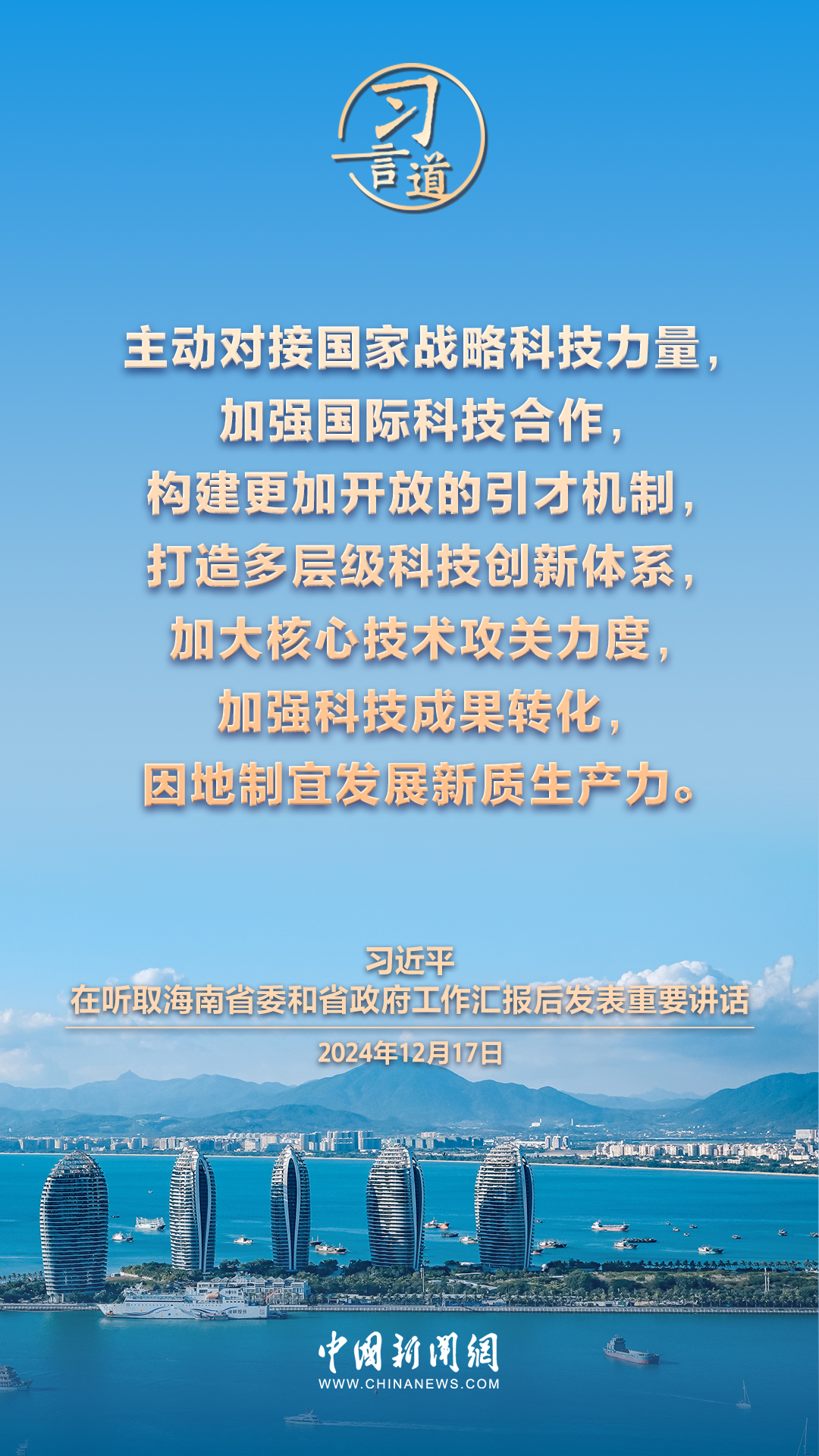 12月17日,中共中央总书记、国家主席、中央军委主席习近平在听取海南省委和省政府工作汇报后发表重要讲话,他指出——