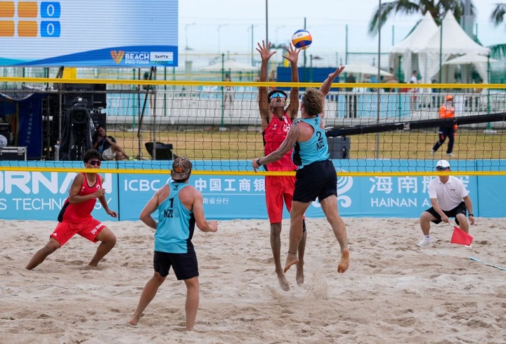 图为2026年世界沙滩排球职业巡回赛未来赛(三亚站)暨第六届亚洲沙滩运动会沙滩排球测试赛场景