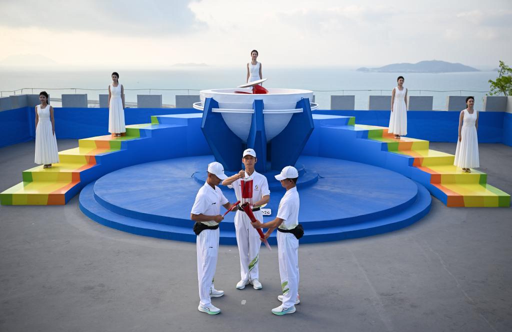 3月30日,第六届亚洲沙滩运动会火种采集仪式在海南三亚举行。新华社记者 蒲晓旭 摄